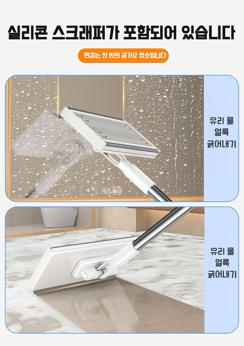 실리콘 스트립이 장착된 플랫 밀대 클로즈업
